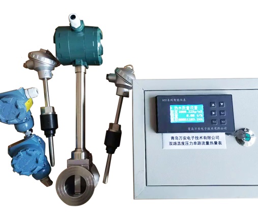 導熱油熱量表包含一臺渦街流量傳感器,兩支熱電阻采集溫度信號,一臺熱量表。顯示兩路溫度,一路流量。如果現場工況需要,可以分別在冷端和熱端各安裝一臺渦街流量傳感器,熱量表就可以顯示兩路的溫度,兩路流量。
